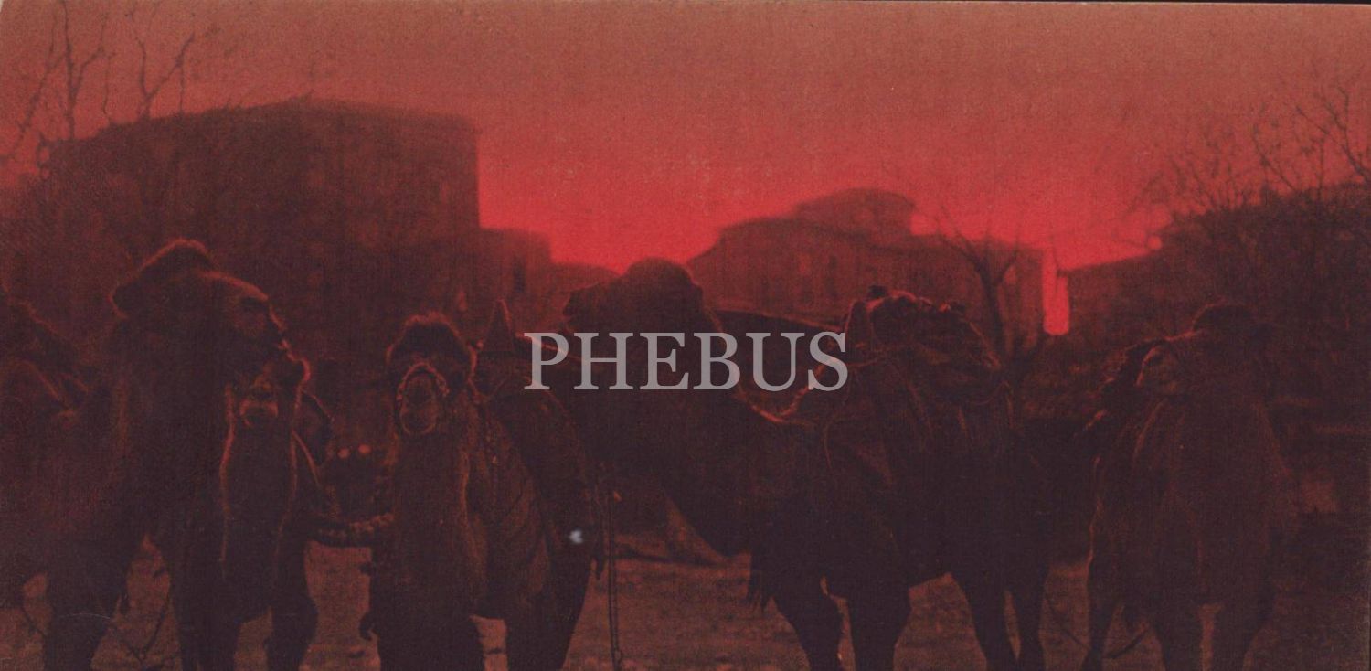 Sultan Mehmet Meydanı´nda (İstanbul) Develer görselli kartpostal, ed.: E.F. Rochat, 14x9 cm...
