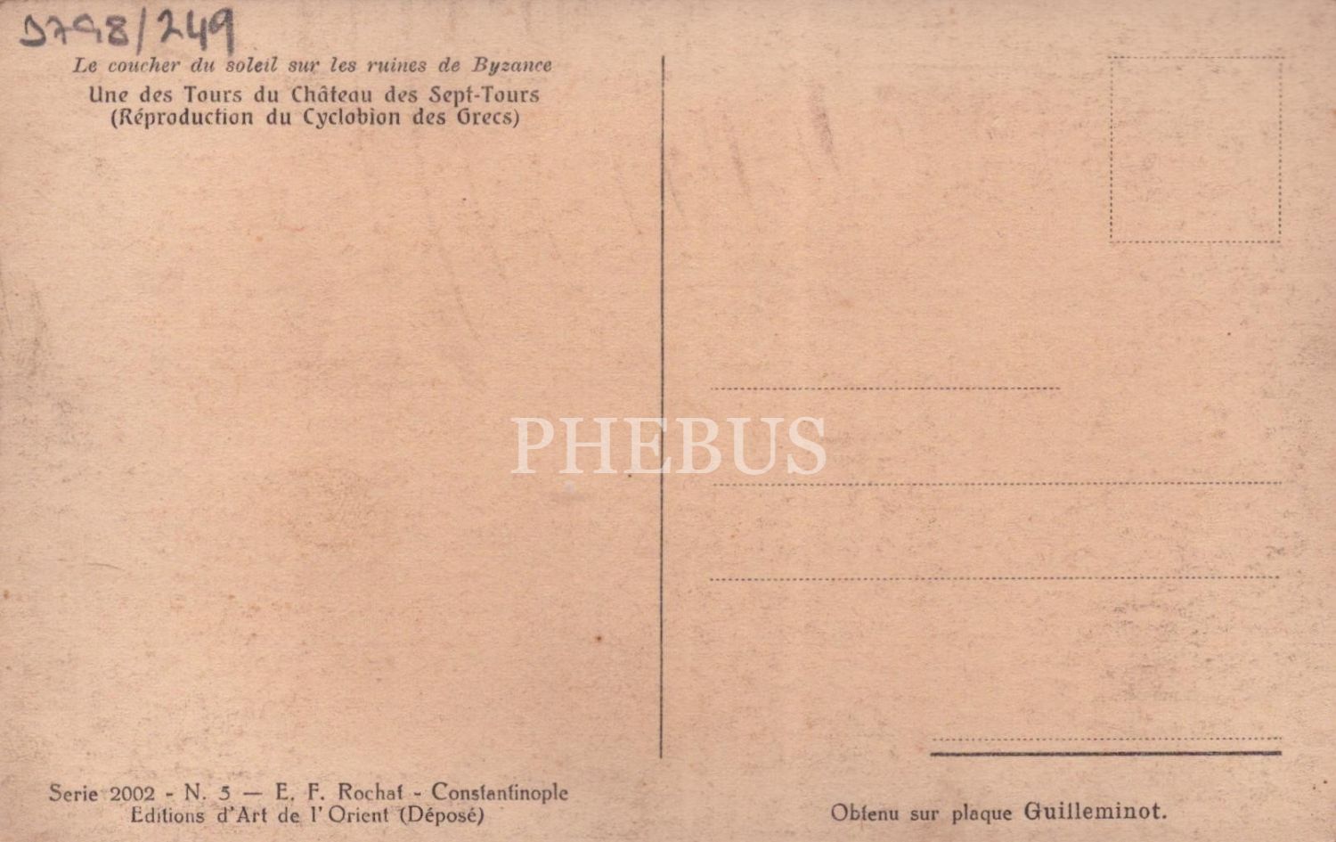 Rumeli Hisarı´nda (İstanbul) gün batımı görselli kartpostal, ed.: E.F. Rochat, 14x9 cm...