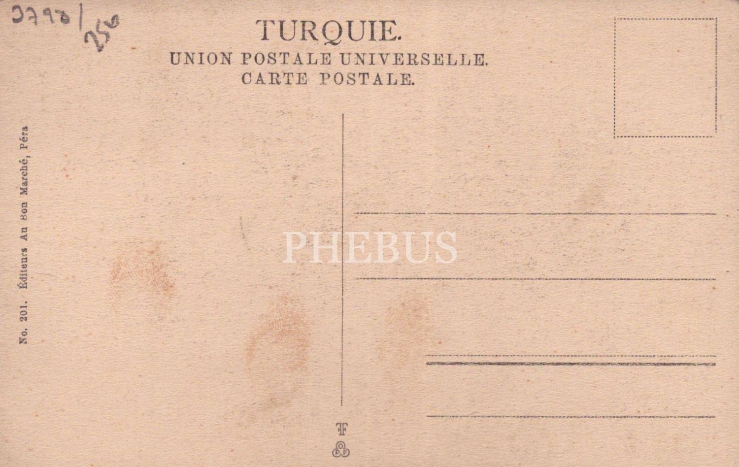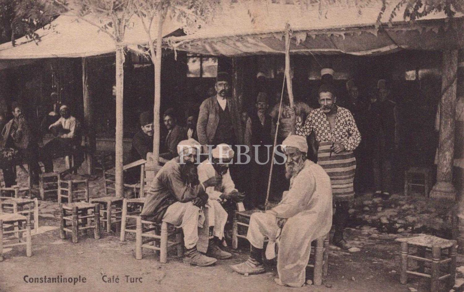 İstanbul´da kahvede oturan beyler ve kahveci görselli kartpostal, ed.: Bon Marche - Pera, "Constantinople Café Turc", 14x9 cm...