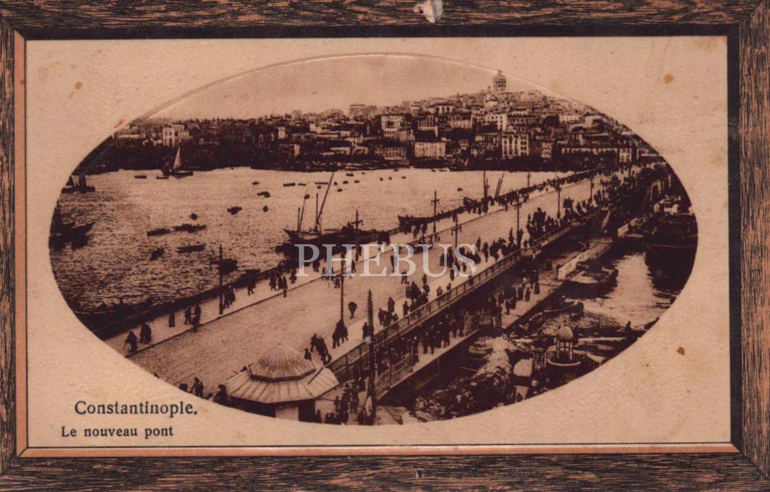 İstanbul Galata Köprüsü görselli kartpostal, "Constantinople. Le nouveau pont", 14x9 cm...