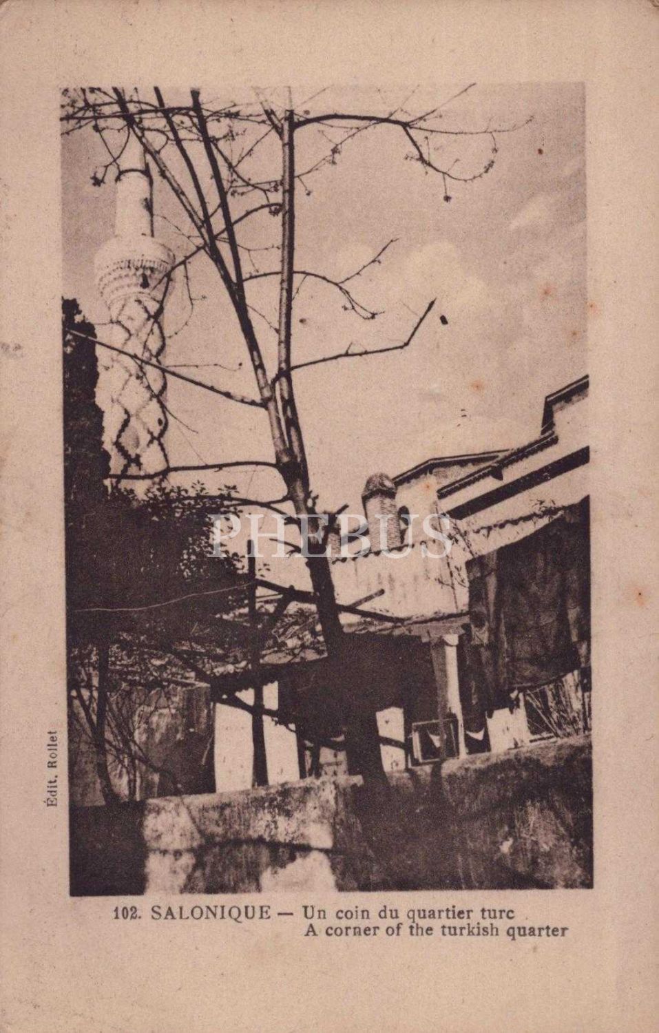 Selanik´te Türk mahallesinden bir köşe görselli kartpostal, ed.: Rollet, " SALONIQUE-Un coin du quartier turc", "A corner of the Turkish quarter", 14x9 cm...