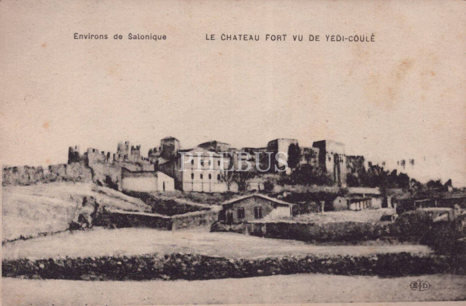 Yedi Kule Kalesi manzaralı kartpostal, ed.: E. Le Deley, " Environs de Salonique", "Le Chateau Fort Vu De Yedi-Coule", 14x9 cm...