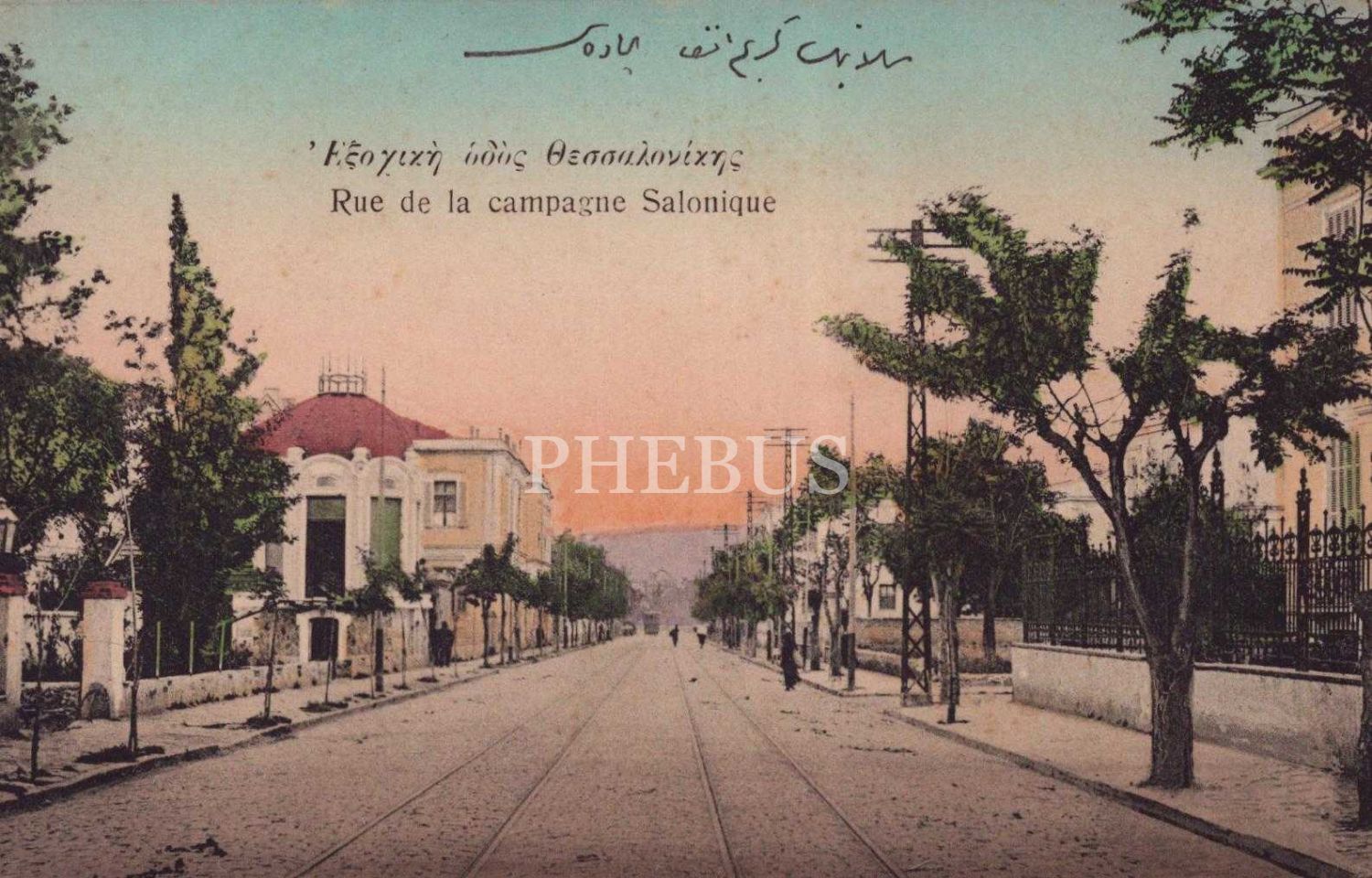 Selanik köy yolu görselli kartpostal, ed.: D. Sonides, "Rue de la campagne Salonique", 14x9 cm...