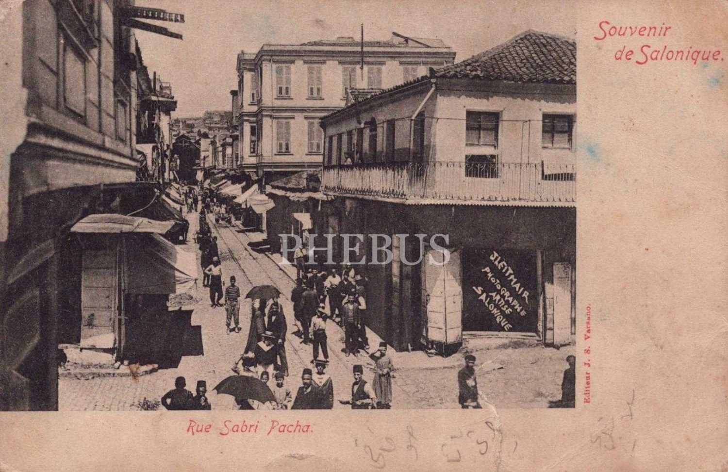 Sabri Paşa Sokağı, ed.: J. S. Varsano,"Rue Sabri Pacha", "Souvenir de Salonique", 14x9 cm...