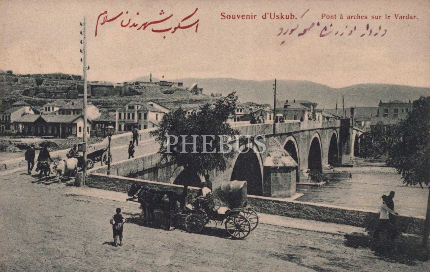 Vardar Kemer Köprüsü görselli kartpostal, Üsküp, "Pont a arches sur le Vardar", "Souvenir d´Uskub", 14x9 cm...