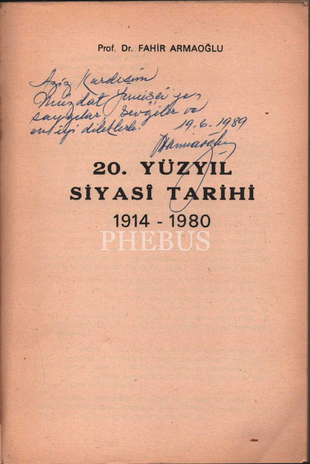 20. YÜZYIL SİYASÎ TARİHİ (1914-1980), Fahir Armaoğlu, 1988, Türkiye İş Bankası Kültür Yayınları, 883 sayfa, 16x24 cm, İTHAFLI VE İMZALI...