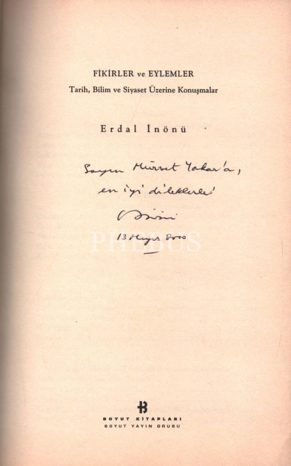 FİKİRLER VE EYLEMLER (Tarih, Bilim ve Siyaset Üzerine Konuşmalar), Erdal İnönü, 1999, Boyut Kitapları, 264 sayfa, 14x21 cm, İTHAFLI VE İMZALI...