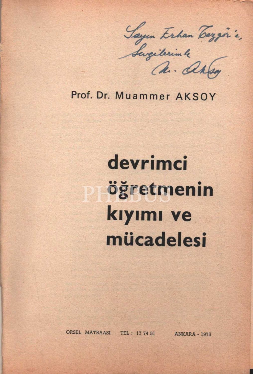 DEVRİMCİ ÖĞRETMENİN KIYIMI VE MÜCADELESİ (2 Cilt), Muammer Aksoy, 1975, Orsel Matbaası, 1298 sayfa, 17x24 cm, ikinci cildi İTHAFLI VE İMZALI...