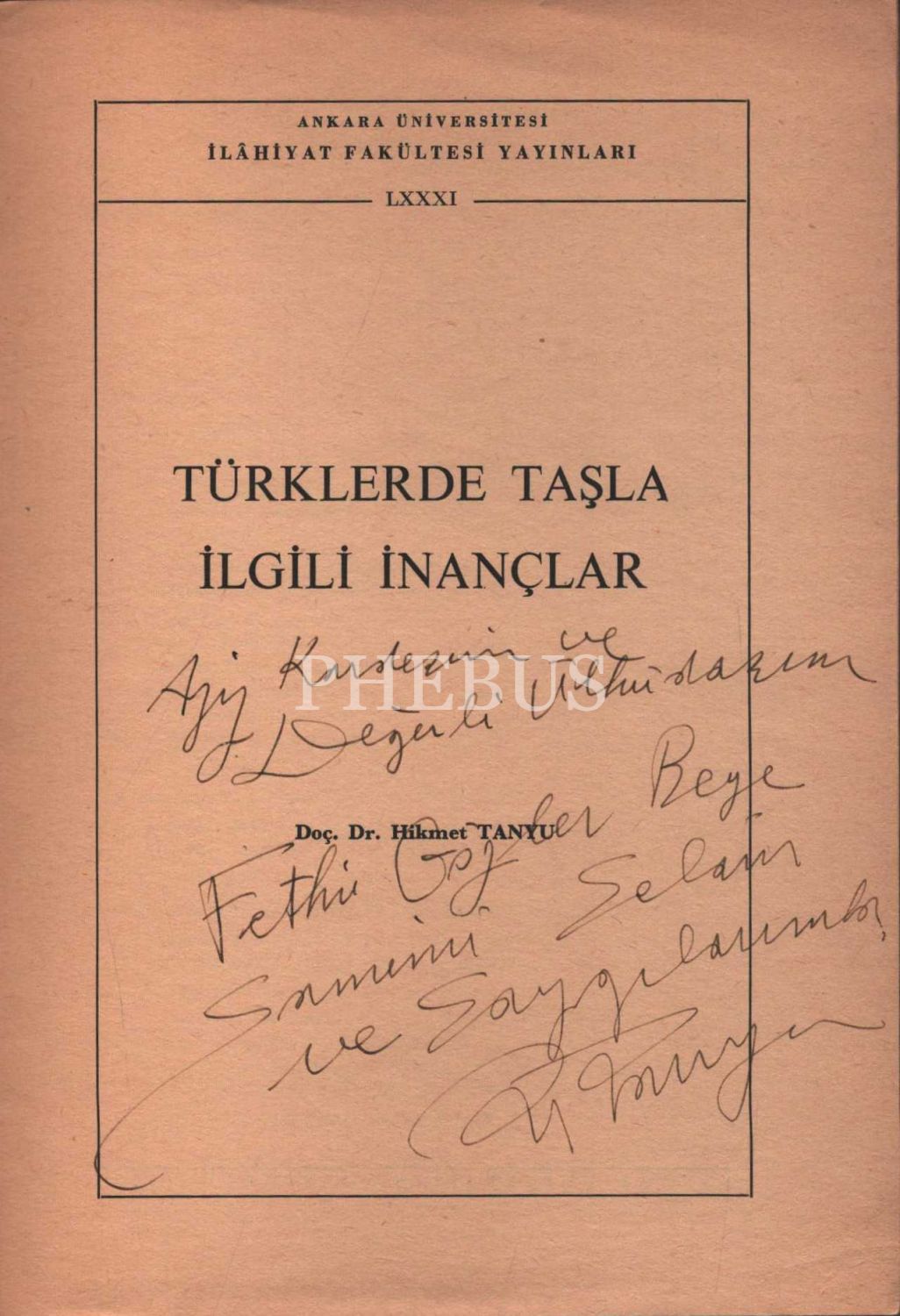TÜRKLERDE TAŞLA İLGİLİ İNANÇLAR, Hikmet Tanyu, 1968, Ankara Üniversitesi Basımevi, 286 sayfa, 17x24 cm, İTHAFLI VE İMZALI...