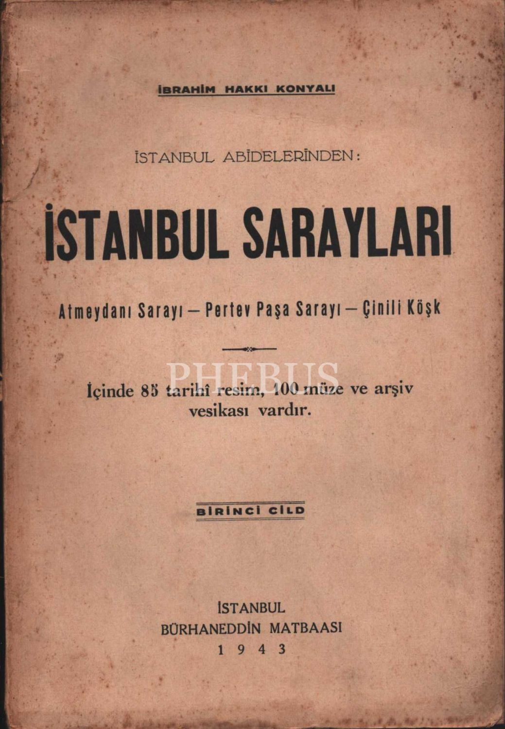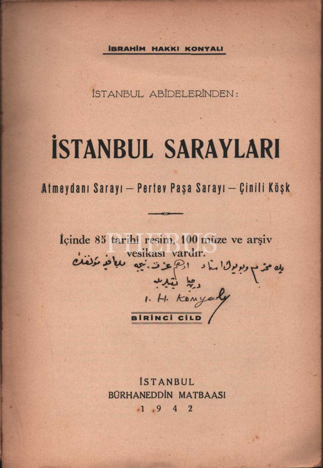İstanbul Abidelerinden: İSTANBUL SARAYLARI (Atmeydanı Sarayı - Pertev Paşa Sarayı - Çinili Köşk), İbrahim Hakkı Konyalı, 1943, Bürhaneddin Matbaası, 301 sayfa, 17x24 cm, İTHAFLI VE İMZALI...