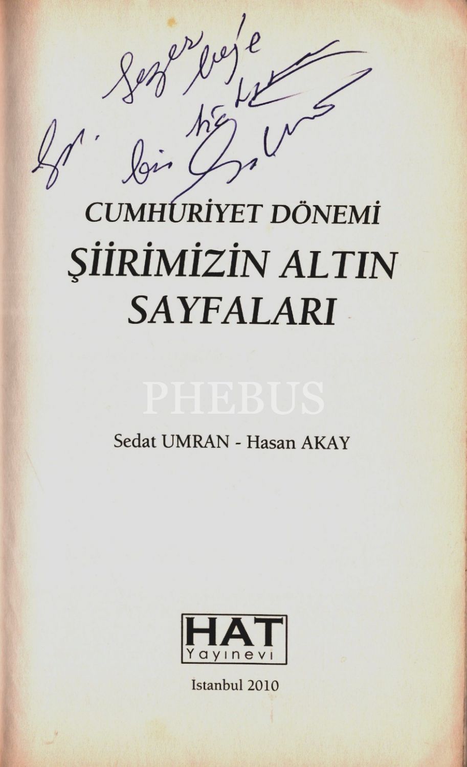 CUMHURİYET DÖNEMİ ŞİİRİMİZİN ALTIN SAYFALARI, Sedat Umran & Hasan Akay, 2010, Hat Yayınevi, 457 sayfa, 14x22 cm, Sedat Umran´dan İTHAFLI VE İMZALI...
