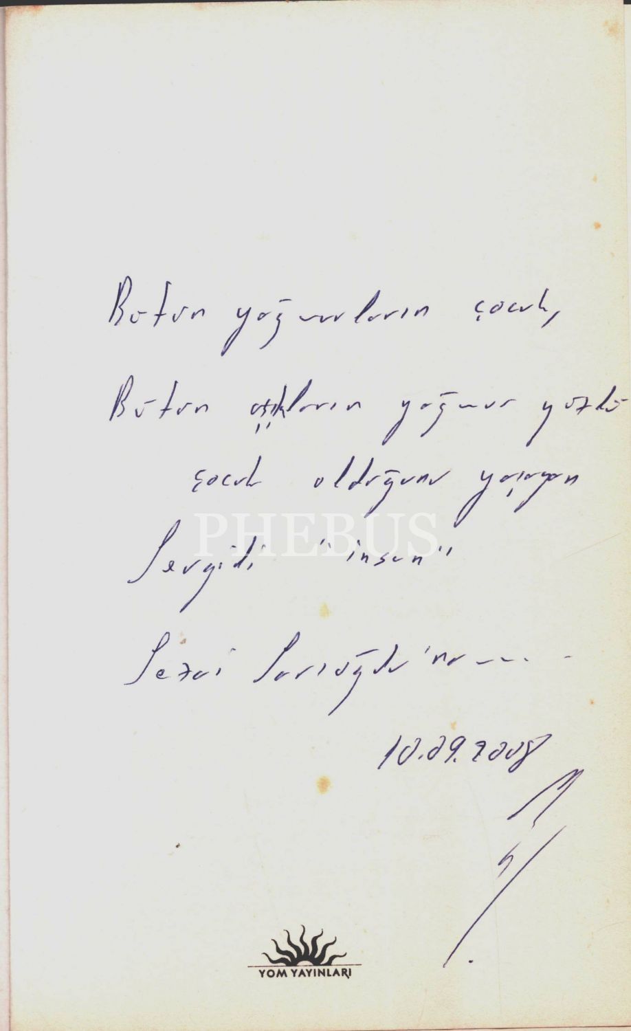 İthaf, "Bütün yağmurların çocuk, Bütün aşıkların yağmur yüzlü çocuk olduğunu yazan? Sevgili ´insan´ Sezai Sarıoğlu´na... 10.09.2008 Yazıcı" şeklindedir.