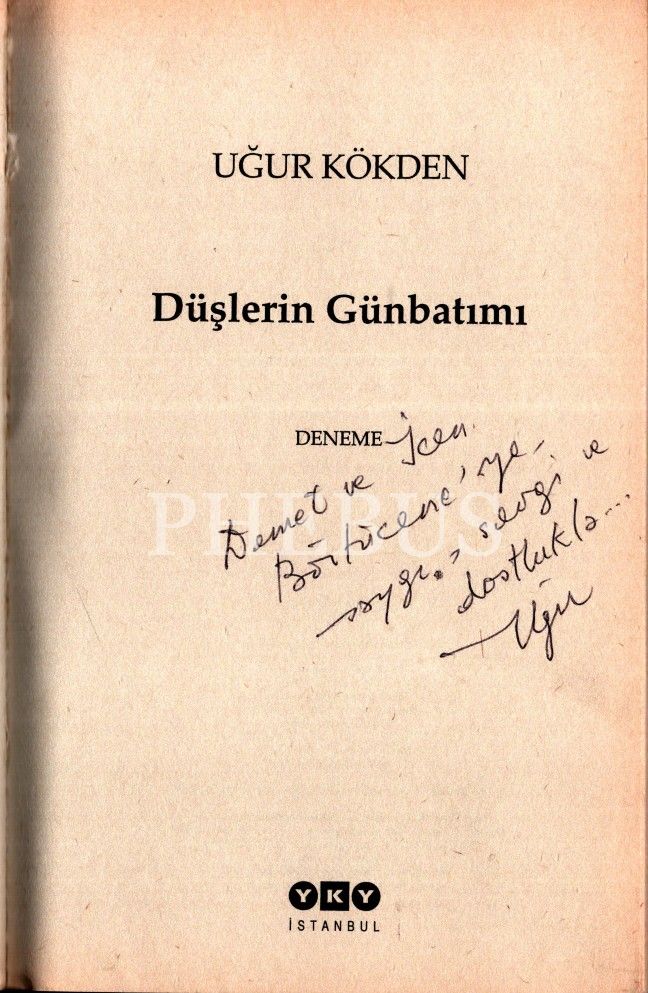 DÜŞLERİM GÜNBATIMI (Deneme), Uğur Kökden, 1999, Yapı Kredi Yayınları, 182 sayfa, 14x21 cm, İTHAFLI VE İMZALI...