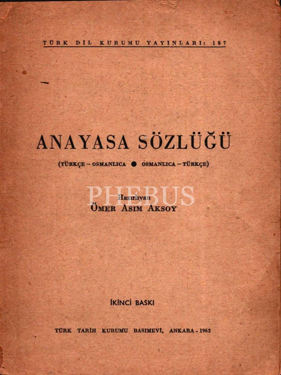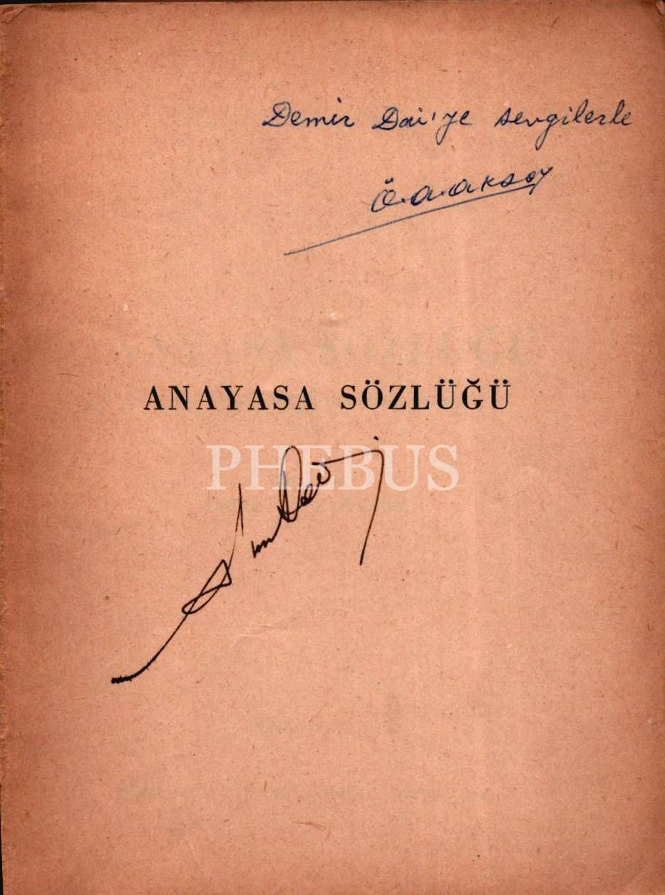ANAYASA SÖZLÜĞÜ, Ömer Asım Aksoy, 1962, Türk Dil Kurumu Yayınları: 187, 101 sayfa, 12x16 cm, İTHAFLI VE İMZALI...