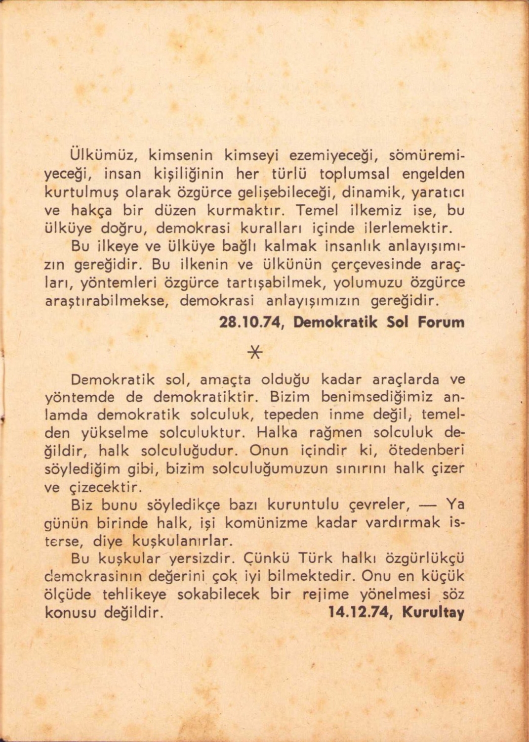 Bülent Ecevit kapaklı Demokratik Sol Parti tanıtım kitapçığı, Ankara, 1975, 24 sayfa, 10x15 cm