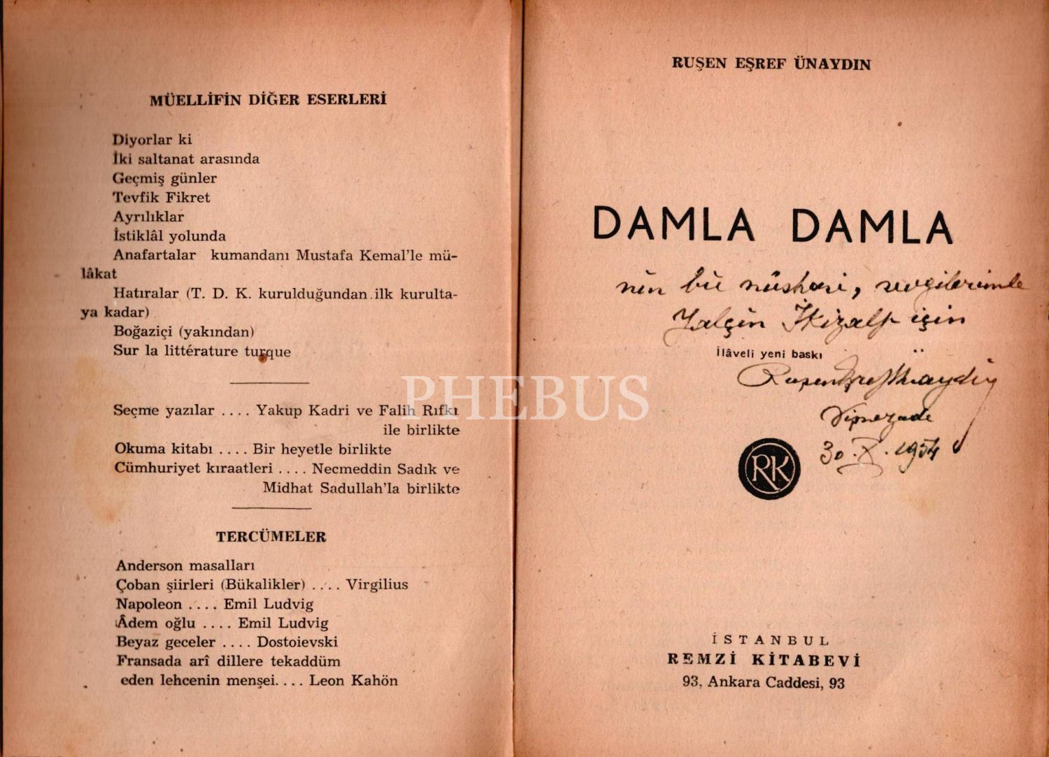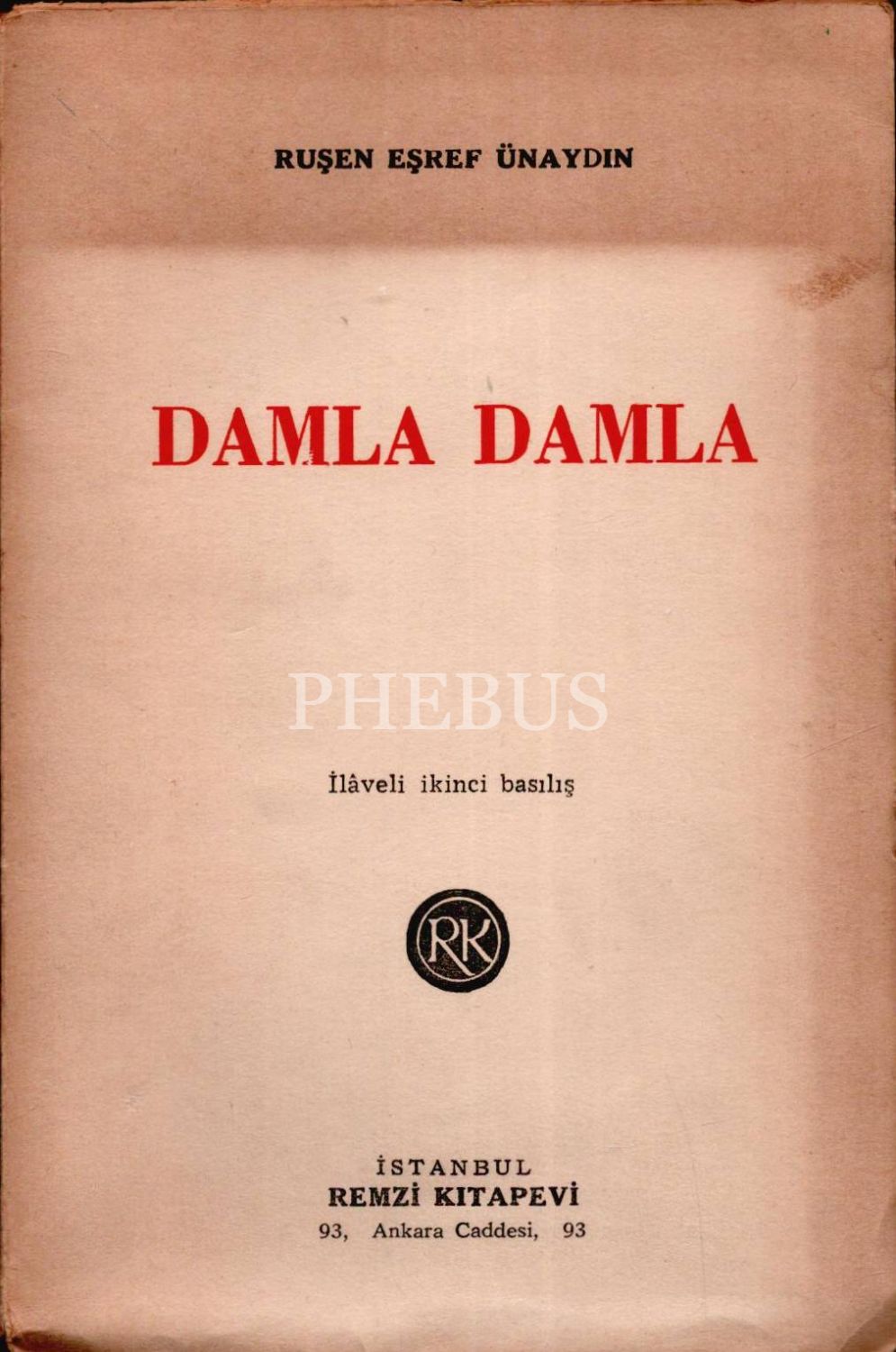 DAMLA DAMLA, Ruşen Eşref Ünaydın, ilaveli ikinci baskı, Remzi Kitabevi, 140 sayfa, 13x20 cm, İTHAFLI VE İMZALI...