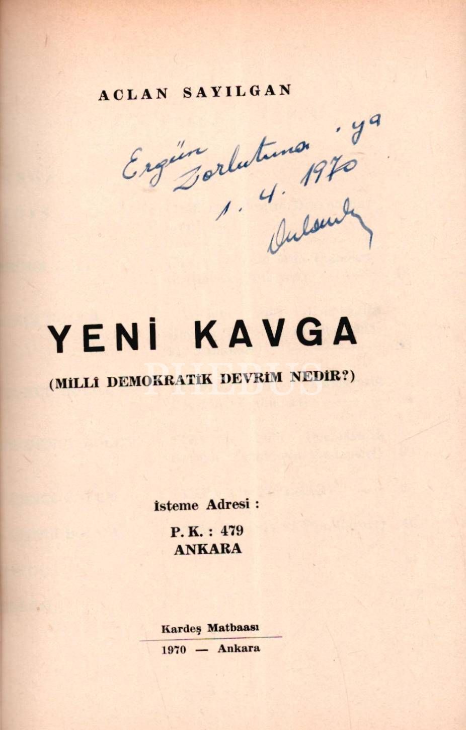 YENİ KAVGA, Aclan Sayılgan, 1970, Ayşe Yayınları, 59 sayfa, 14x20 cm, İTHAFLI VE İMZALI...