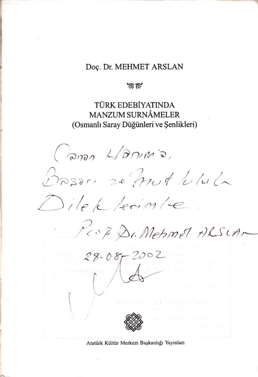 TÜRK EDEBİYATINDA MANZUM SURNAMELER, Mehmet Arslan, 1999, Atatürk Kültür Merkezi Başkanlığı Yayınları, 837 sayfa, 16x24 cm, İTHAFLI VE İMZALI...