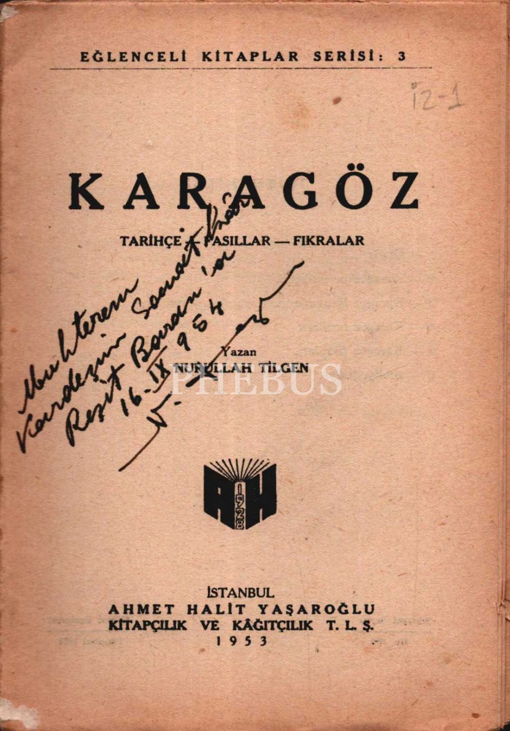 KARAGÖZ - HACİVAT, Nurullah Tilgen, 1953, Güven Basımevi, 96 sayfa, 14x20 cm, İTHAFLI VE İMZALI...