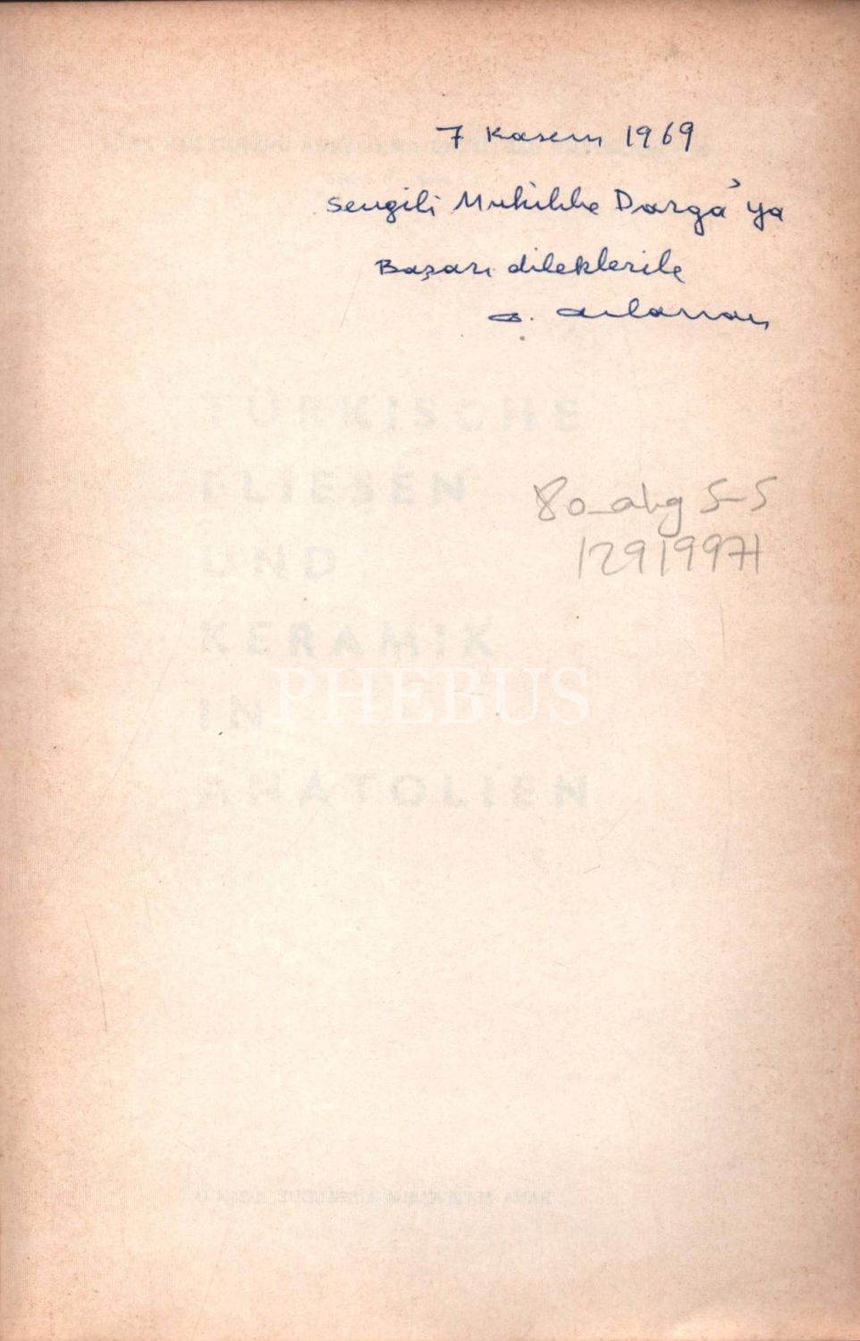 ALMANCA: TURKISCHE FLIESEN UND KERAMIK IN ANATOLIEN, Oktay Aslanapa, 1965, Türk Kültürünü Araştırma Enstitüsü Yayınları, 92+124 sayfa, 17x25 cm, İTHAFLI VE İMZALI...