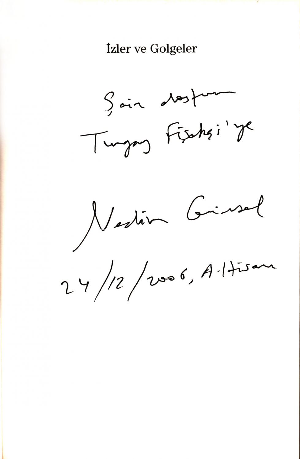 İZLER VE GÖLGELER, Nedim Gürsel, 2005, Doğan Kitap, 213 sayfa, 14x20 cm, İTHAFLI VE İMZALI...