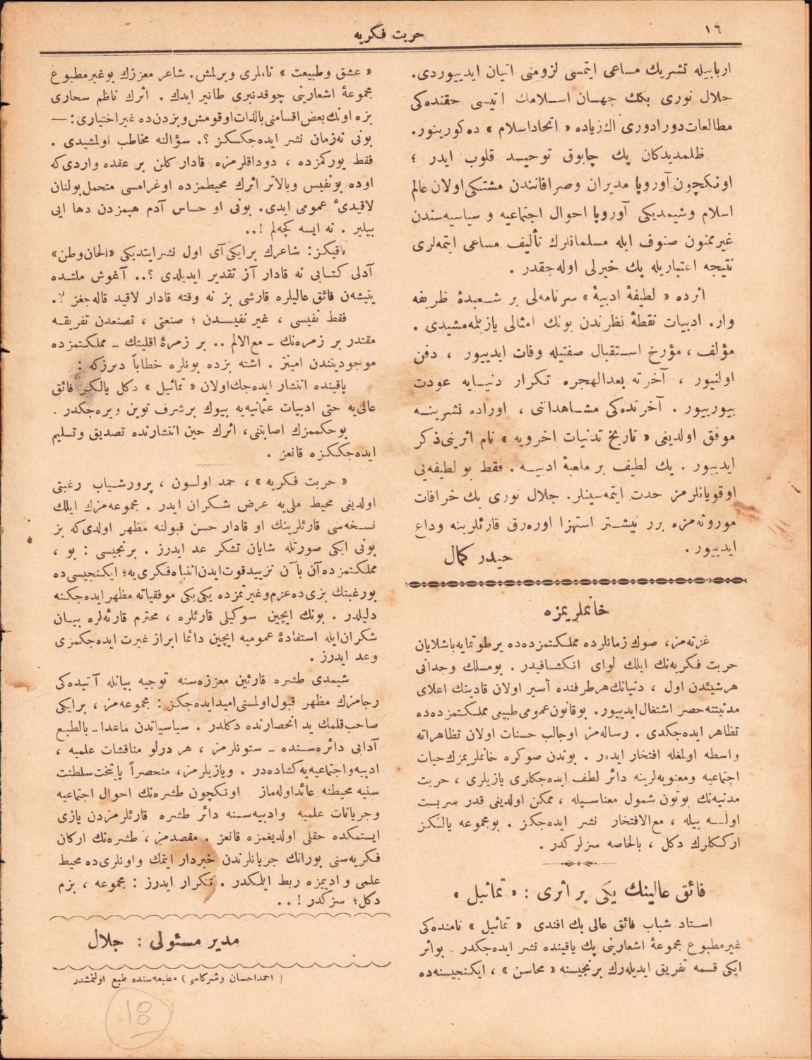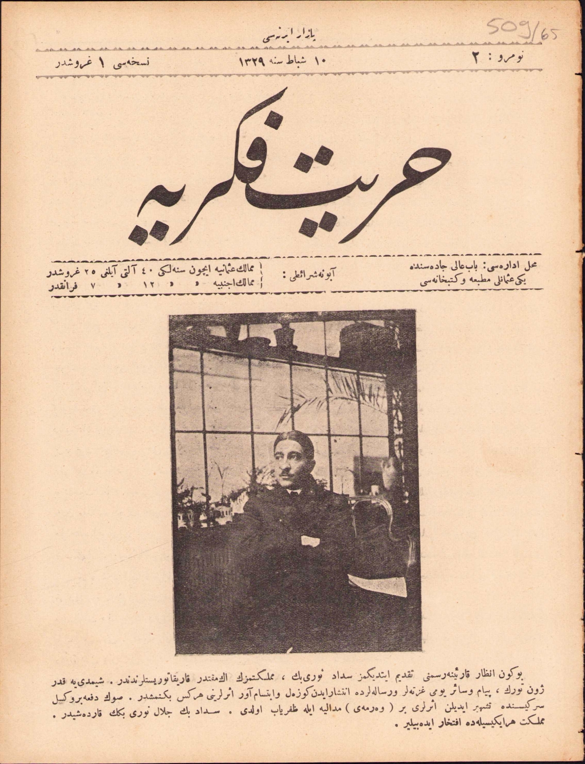 Osmanlıca Hürriyet-i Fikriye gazetesi, 1 Şubat 1329, kapak dönemin önemli karikatüristlerinden Sedat Nuri Bey.16 sayfa, 18x24 cm