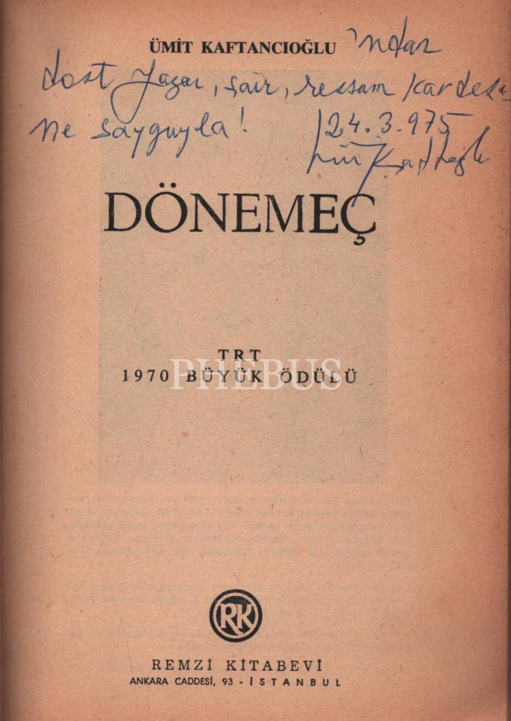 DÖNEMEÇ, Ümit Kaftancıoğlu, 1972, Remzi Kitabevi, 176 sayfa, 14x20 cm, İTHAFLI VE İMZALI...
