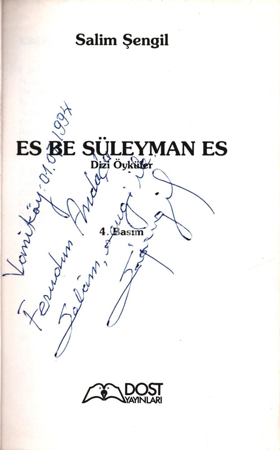 ES BE SÜLEYMAN ES..., Salim Şengil, 1994, Dost Yayınları, 179 sayfa, 14x20 cm, İTHAFLI VE İMZALI...