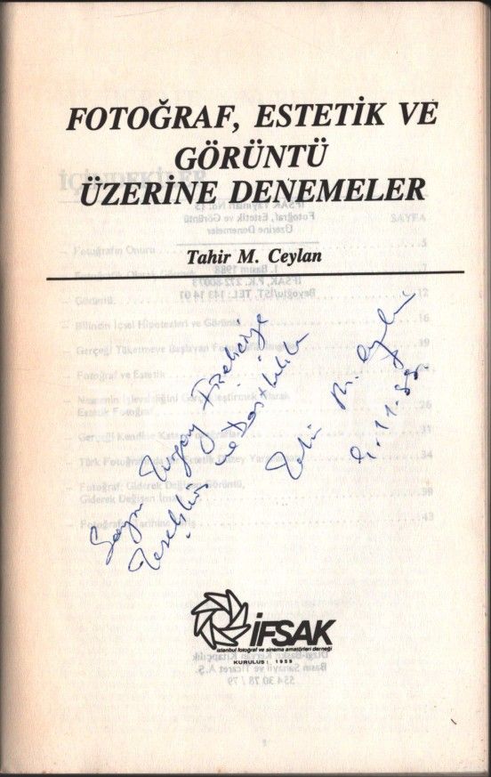 FOTOĞRAF, ESTETİK V E GÖRÜNTÜ ÜZERİNE DENEMELER, Tahir M. Ceylan, 1988, İFSAK Yayınları , 84 sayfa, 15x23 cm, İTHAFLI VE İMZALI...