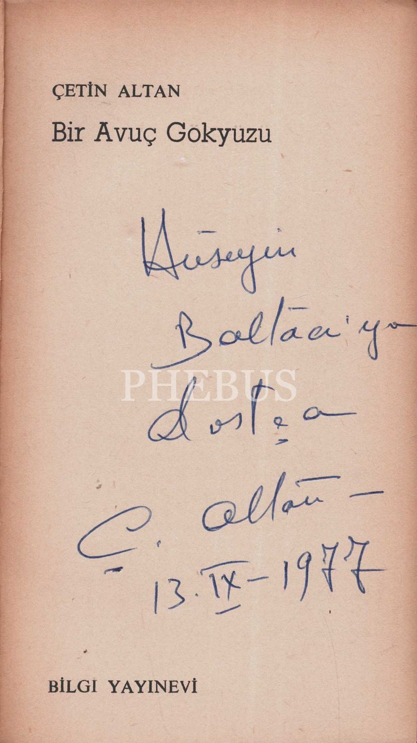 BİR AVUÇ GÖKYÜZÜ, Çetin Altan, 1976, Bilgi Yayınevi, 255 sayfa, 11x19 cm, İTHAFLI VE İMZALI...
