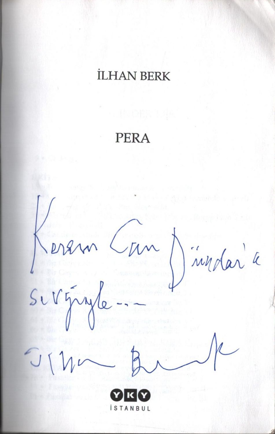 PERA, İlhan Berk, 2000, Yapı Kredi Yayınları, 187 sayfa, 14x21 cm, İTHAFLI VE İMZALI...
