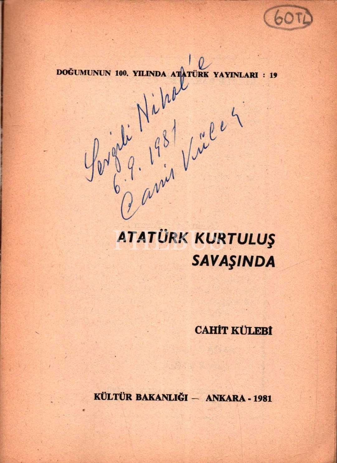 ATATÜRK KURTULUŞ SAVAŞINDA, Cahit Külebi, 1981, Kültür Bakanlığı, 61 sayfa, 14x19 cm, İTHAFLI VE İMZALI...