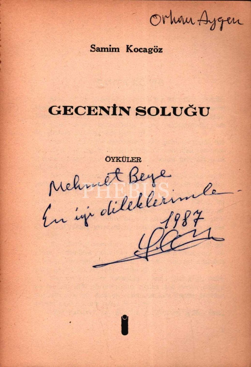 GECENİN SOLUĞU (Öyküler), Samim Kocagöz, 1985, İzlem Yayınları, 152 sayfa, 14x20 cm, İTHAFLI VE İMZALI...