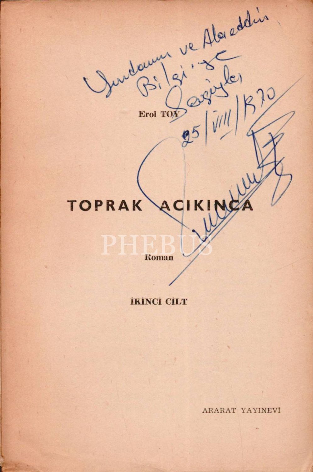 TOPRAK ACIKINCA [İkinci Cilt], Erol Toy, 1968, Ararat Yayınları, 438 sayfa, 13x20 cm, İTHAFLI VE İMZALI...