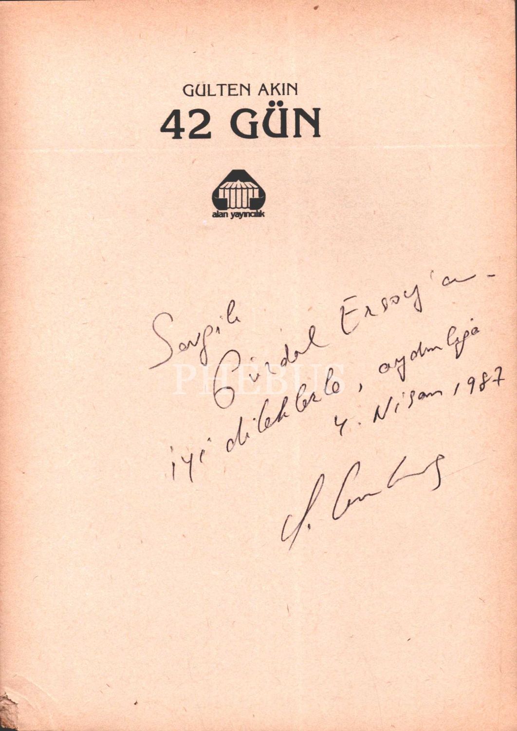 42 GÜN, Gülten Akın, 1986, Alan Yayıncılık, 95 sayfa, 13x19 cm, İTHAFLI VE İMZALI...