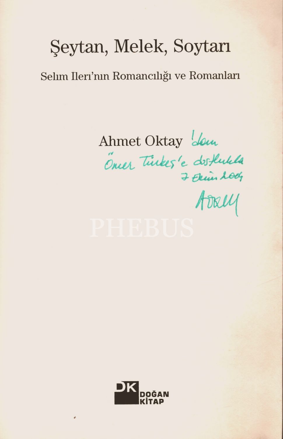 ŞEYTAN, MELEK, SOYTARI(Eleştiri), Ahmet Oktay, 2004, Doğan Kitap, 21 sayfa, 14x20 cm, İTHAFLI VE İMZALI...