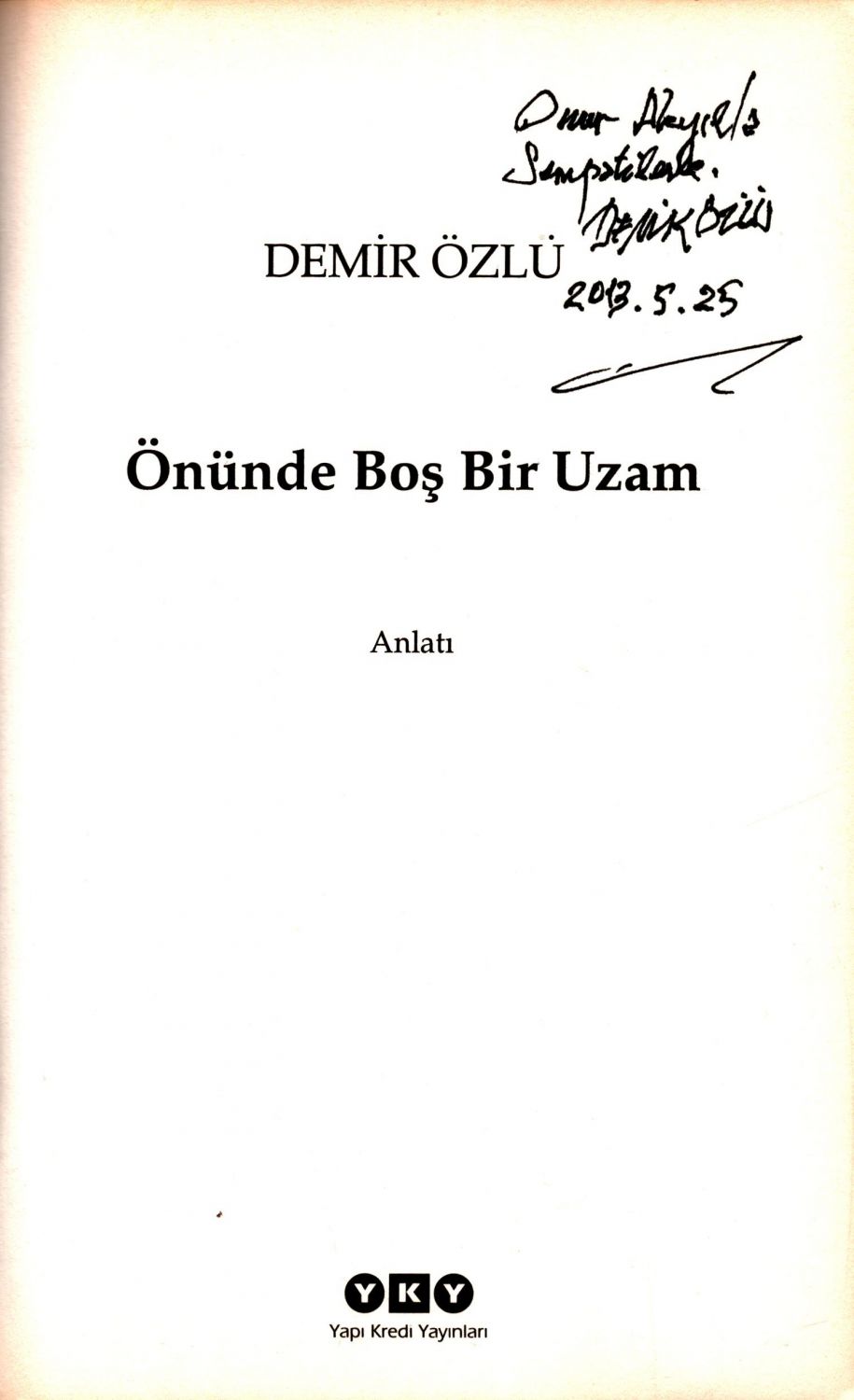 ÖNÜNDE BOŞ BİR UZAM, Demir Özlü, 2012, Yapı Kredi Yayınları, 71 sayfa, 14x20 cm, İTHAFLI VE İMZALI...