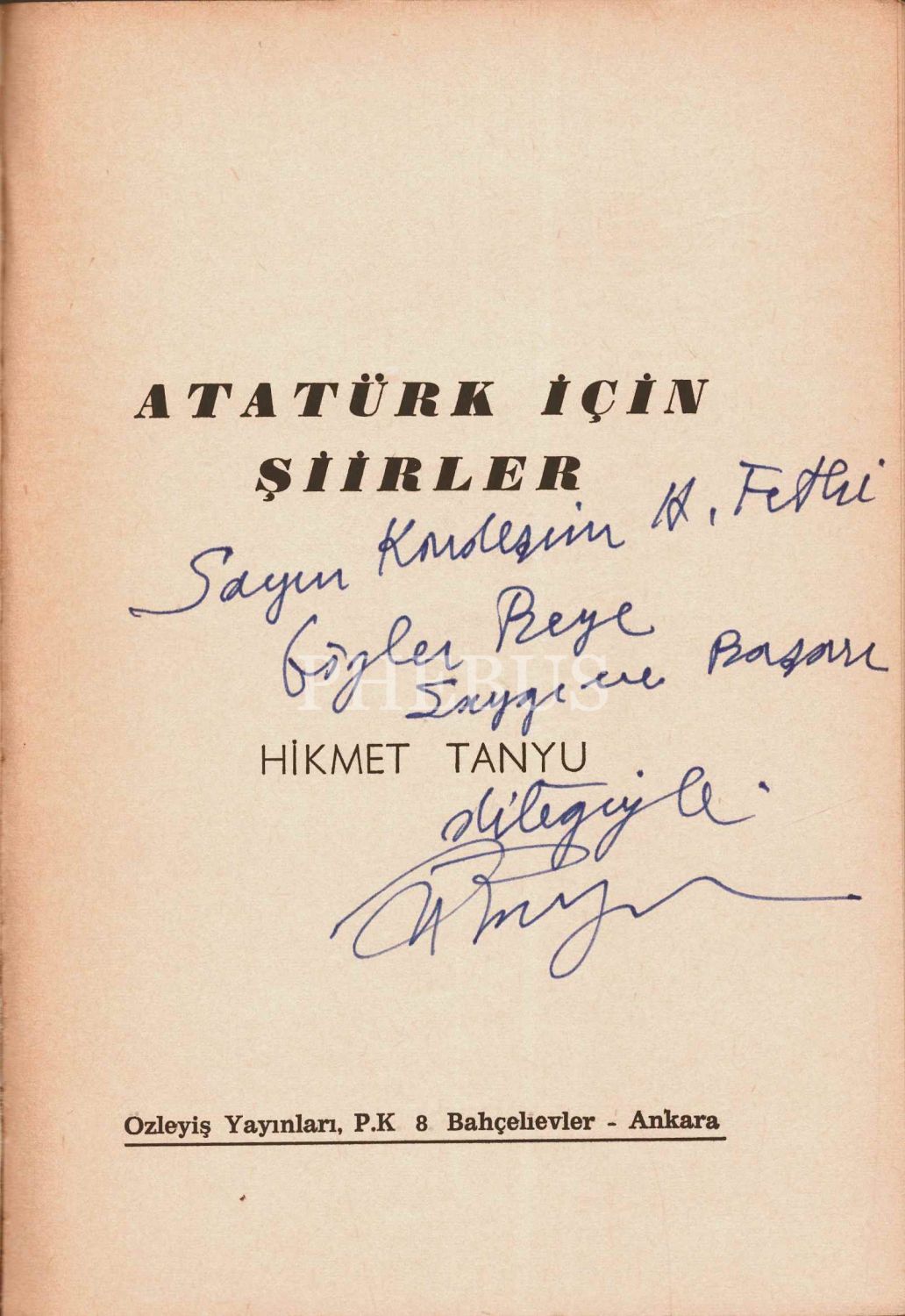 ATATÜRK İÇİN ŞİİRLER, Hikmet Tanyu, Özleyiş Yayınları, 59 sayfa, 14x20 cm, İTHAFLI VE İMZALI...