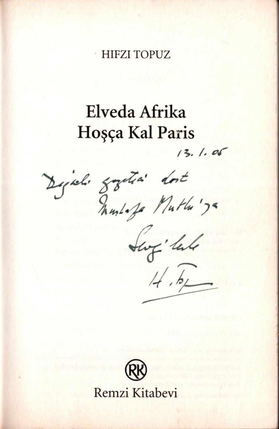 ELVEDA AFRİKA HOŞÇA KAL PARİS, Hıfzı Topuz, 2005, Remzi Kitabevi,462 sayfa, 14x20 cm İTHAFLI VE İMZALI...