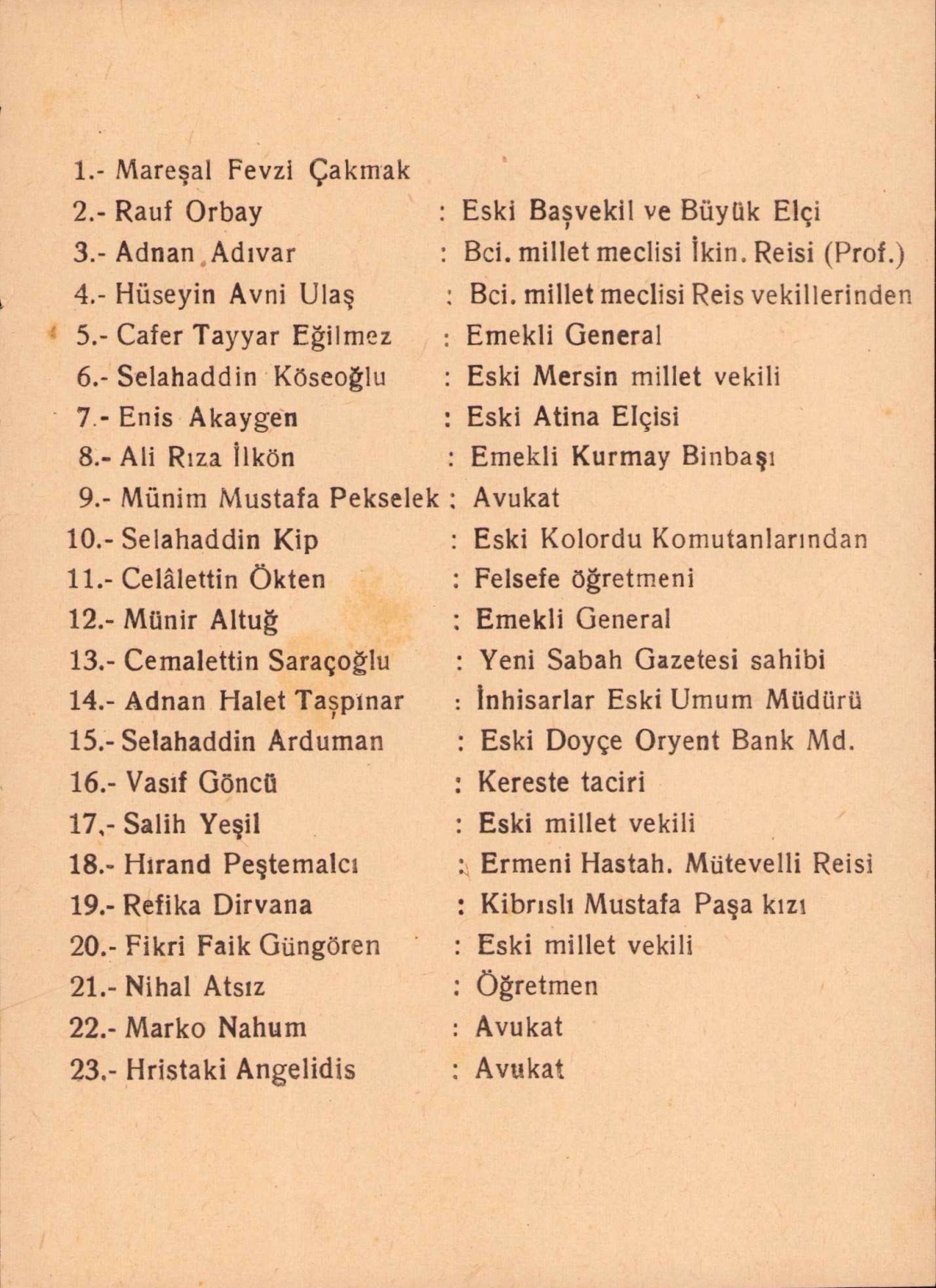 Mareşal Fevzi Çakmak, Rauf Orbay, Adnan Adıvar, Cafer Tayyarın da yer aldığı seçim ilanı, 12x16 cm