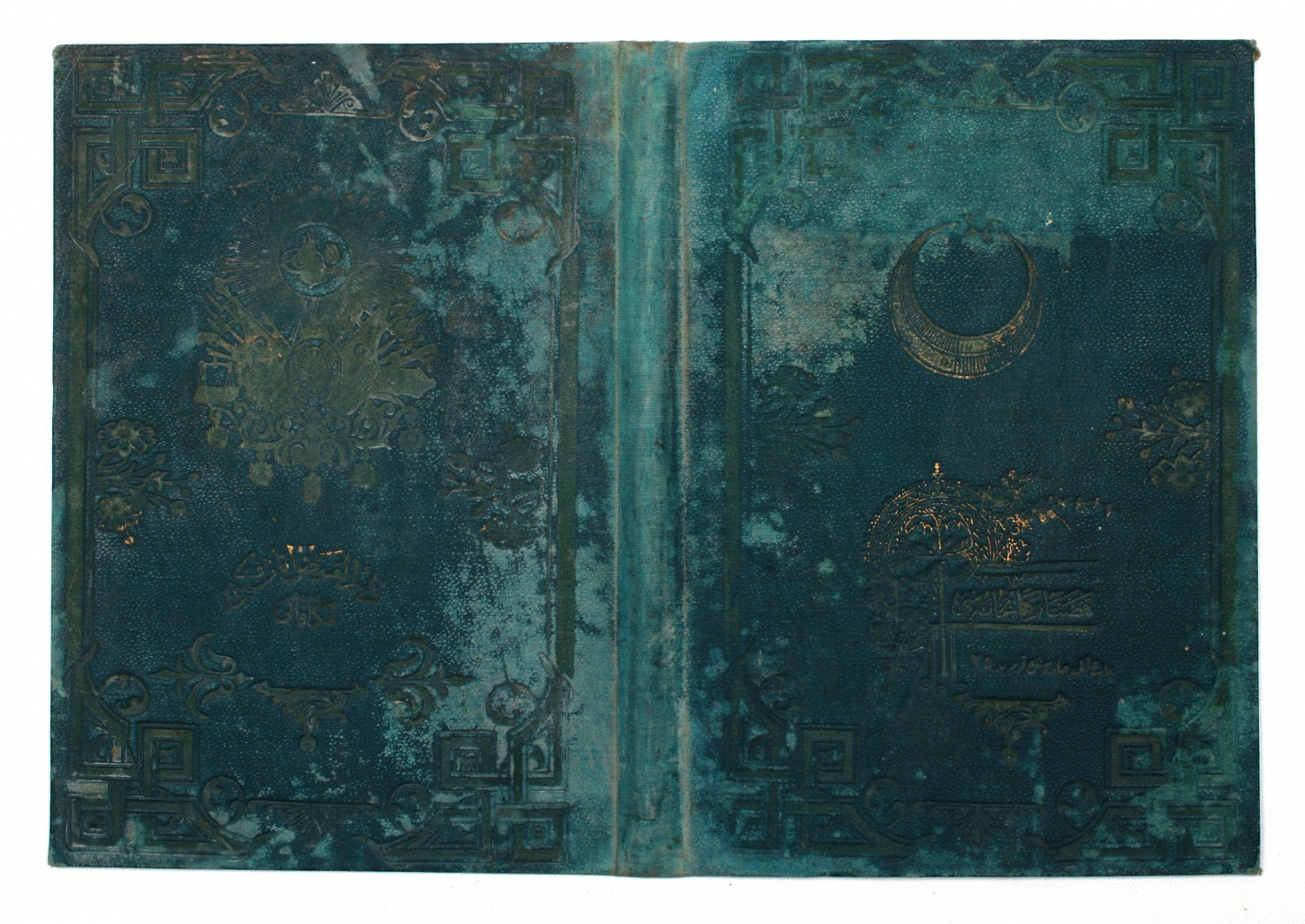 Osmanlı Darü'l Feyz İnas Mektebi Mükafat cildi, bir yüzü devlet armalı diğer yüzü ay yıldız, 16x22 cm