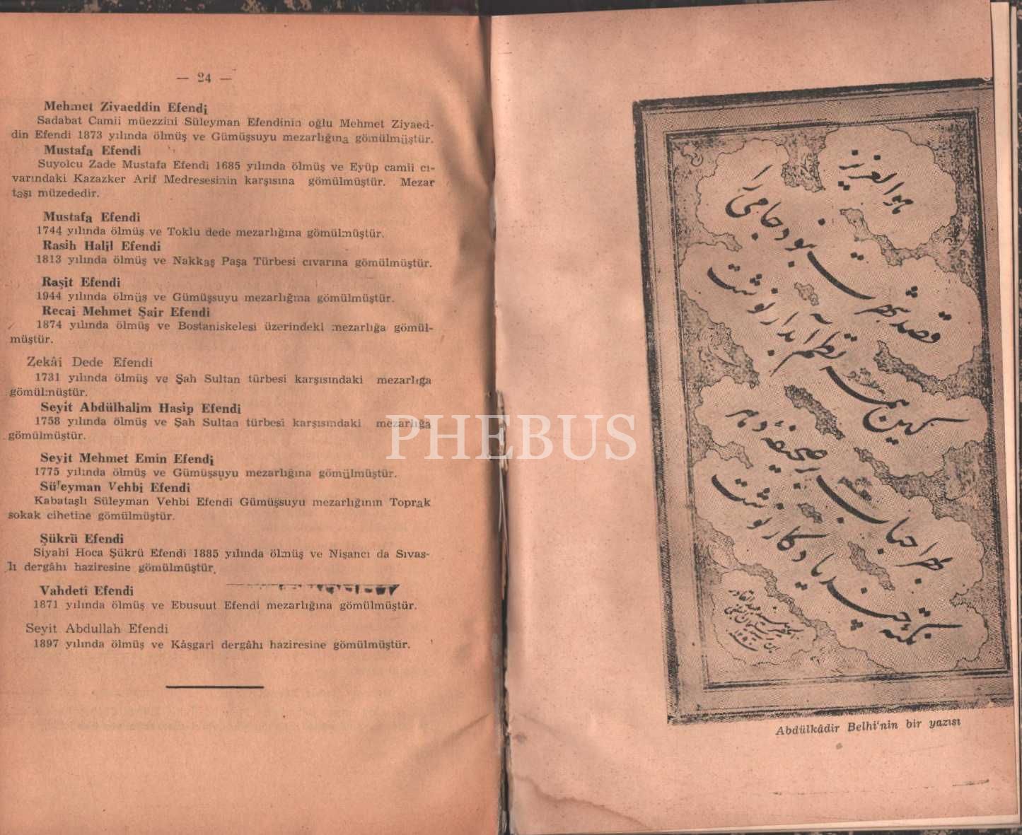 EYÜPLÜ HATTATLAR (1650-1950), Nurullah Tilgen, İstanbul 1950, Aydınlık Basımevi, 24+8 sayfa, 14x23 cm...