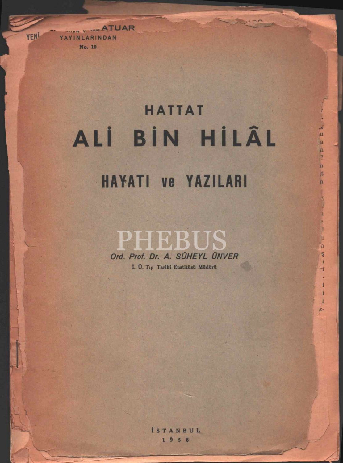 HATTAT ALİ BİN HİLÂL HAYATI VE YAZILARI, Süheyl Ünver, 1958, Yeni Laboratuar Yayınları, 15+9 sayfa, 19x26 cm...