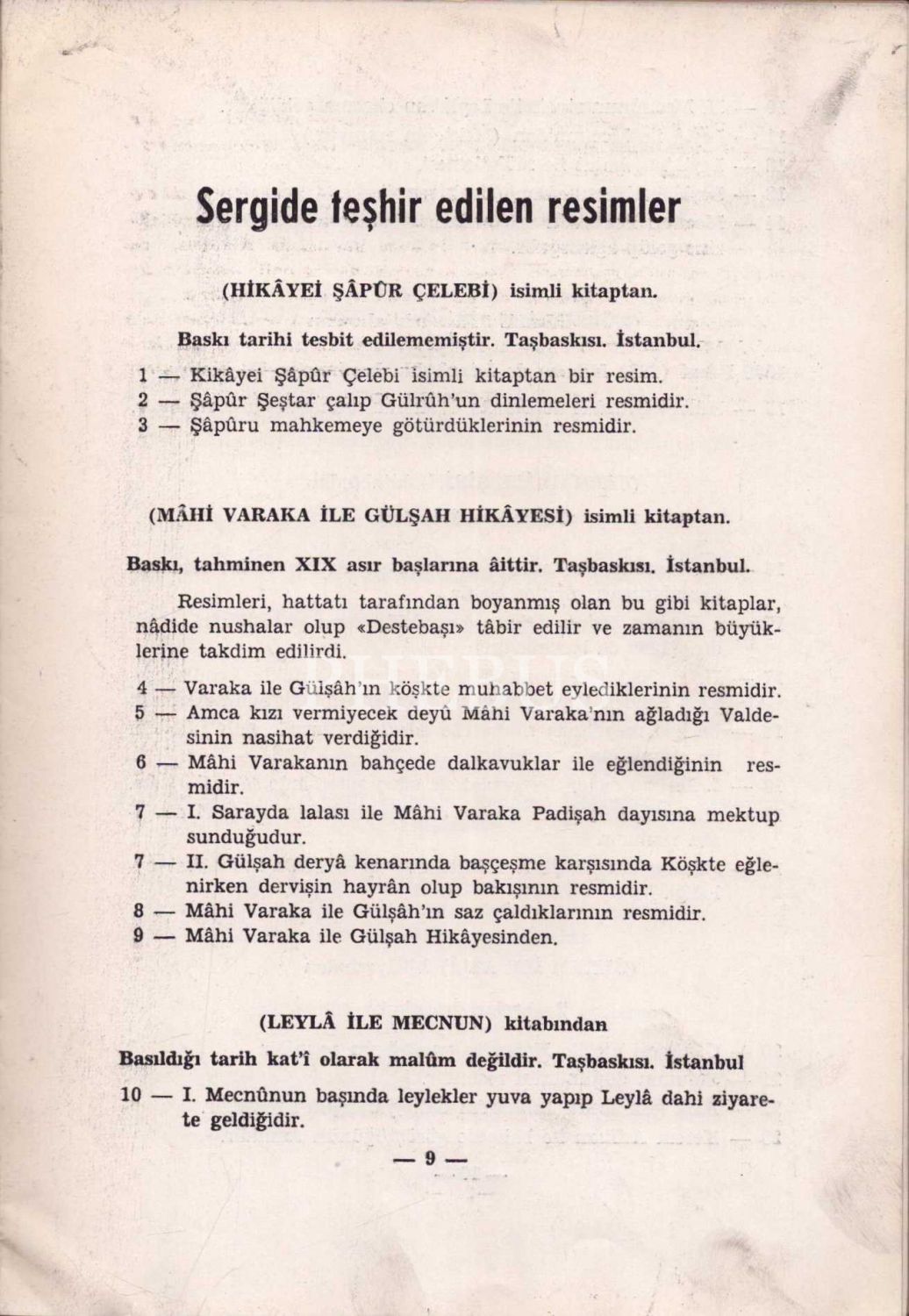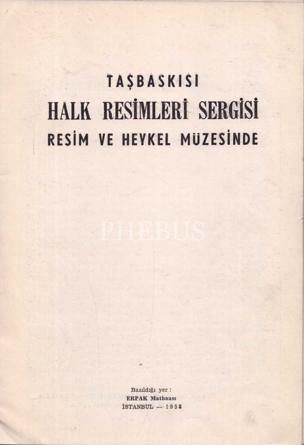 TAŞBASKISI HALK RESİMLERİ SERGİSİ RESİM VE HEYKEL MÜZESİNDE, İstanbul 1958, Erpak Matbaası, 12+11 sayfa, 17x24 cm...