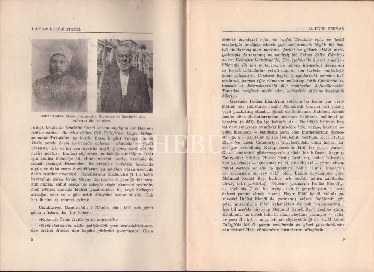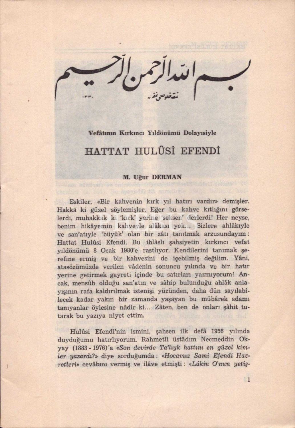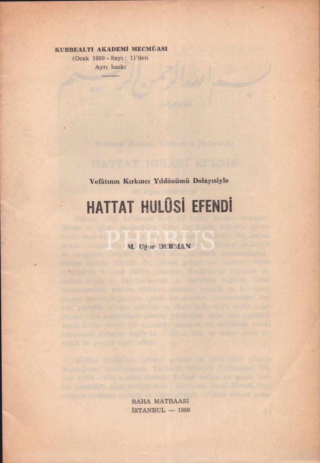 HATTAT HULÛSİ EFENDİ, Uğur Derman, 1980, Baha Matbaası, 24 sayfa, 17x24 cm...