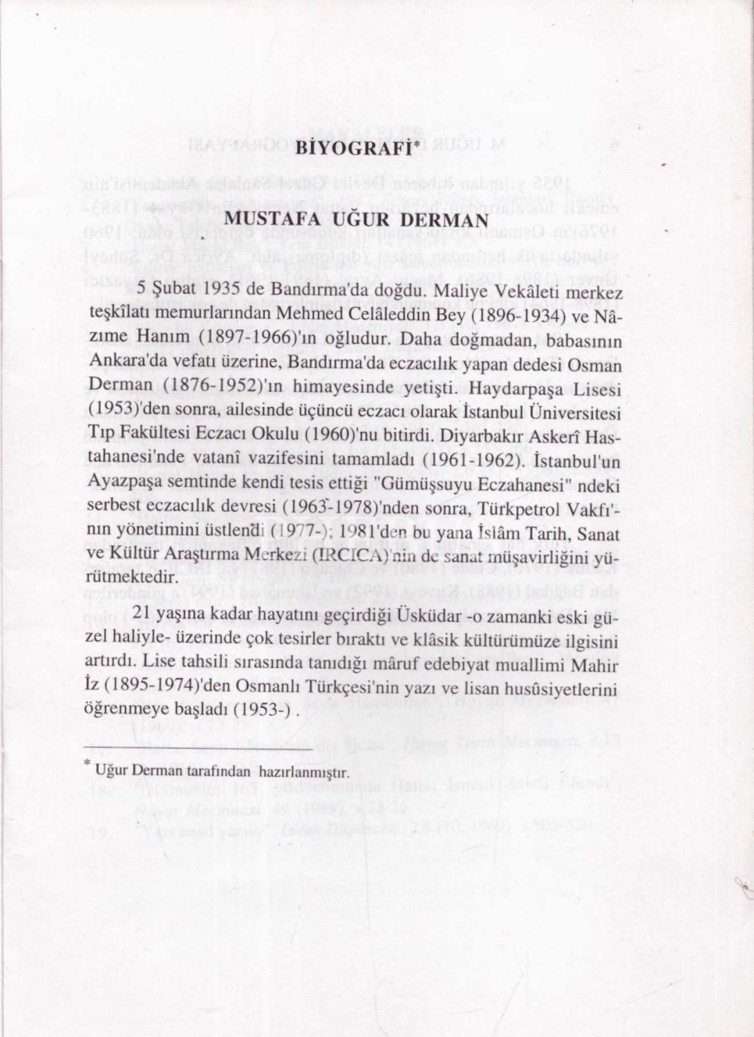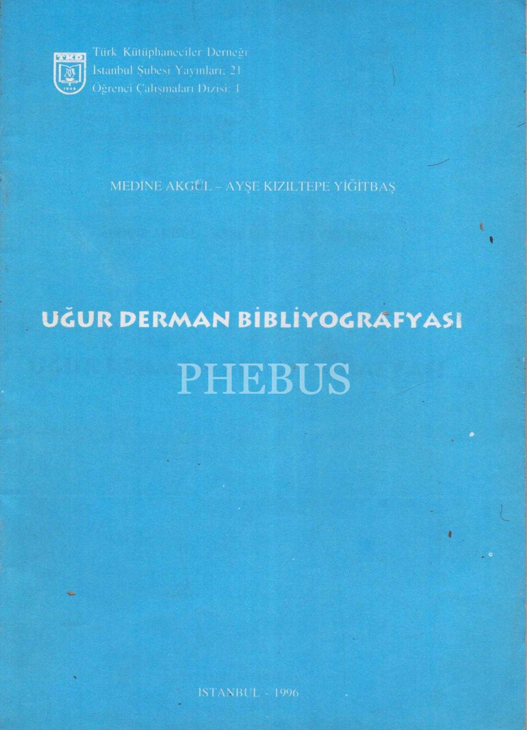 UĞUR DERMAN BİBLİYOGRAFYASI, Medine Akgül-Ayşe Kızıltepe Yiğitbaş, 1996, TÜrk Kütüphaneciler Derneği İstanbul Şubesi Yayınları, 30 sayfa, 17x24 cm...