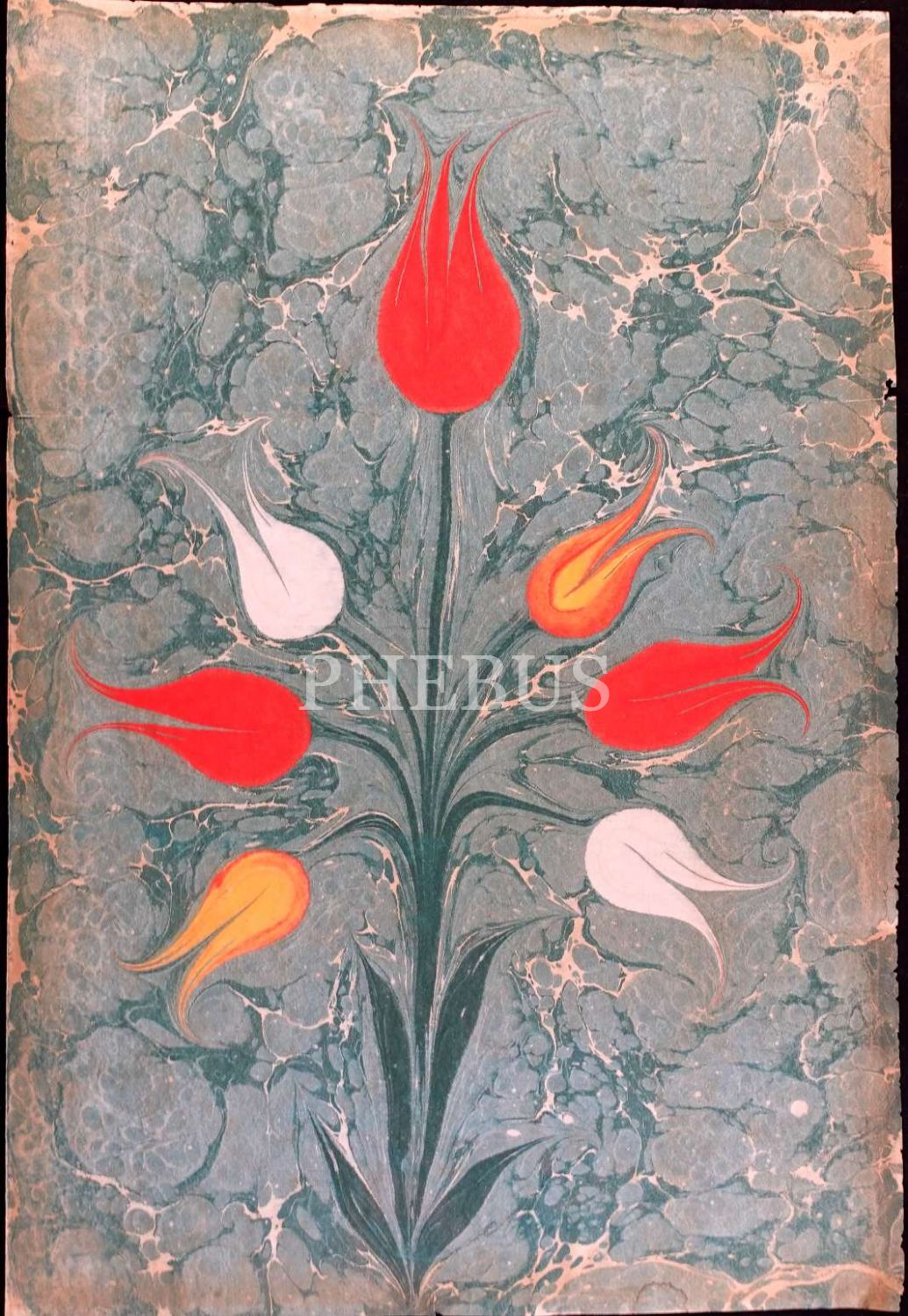 Mustafa Düzgünman çiçek ebrusu, ebru: 49x34 cm, paspartuyla birlikte: 48x70 cm...