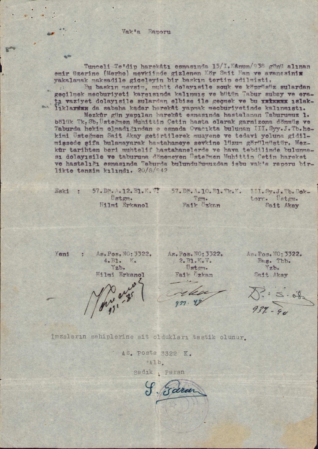 Tunceli Dersim Harekatı vaka raporu, 20x28 cm