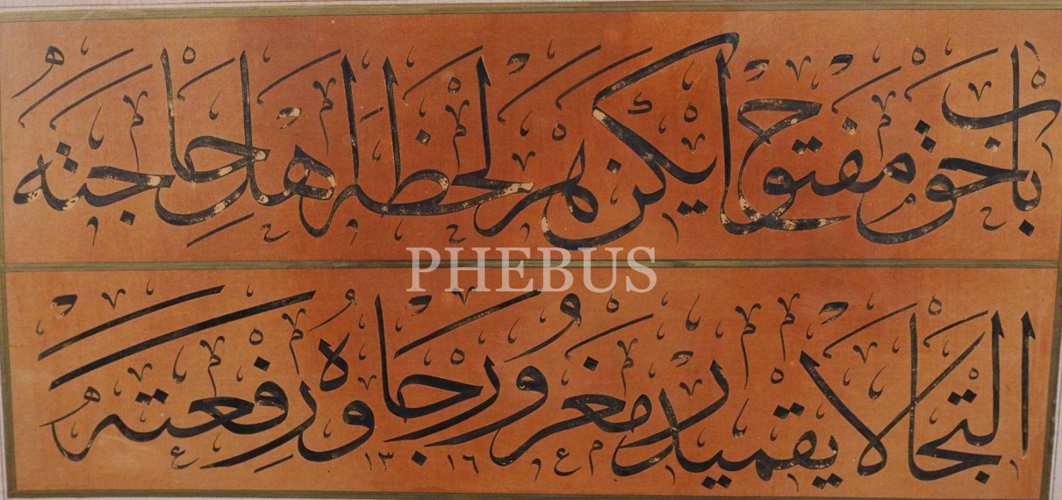 1316 tarihli celi sülüs levha, yazı: 57x29 cm, çerçeve: 70x41 cm...
