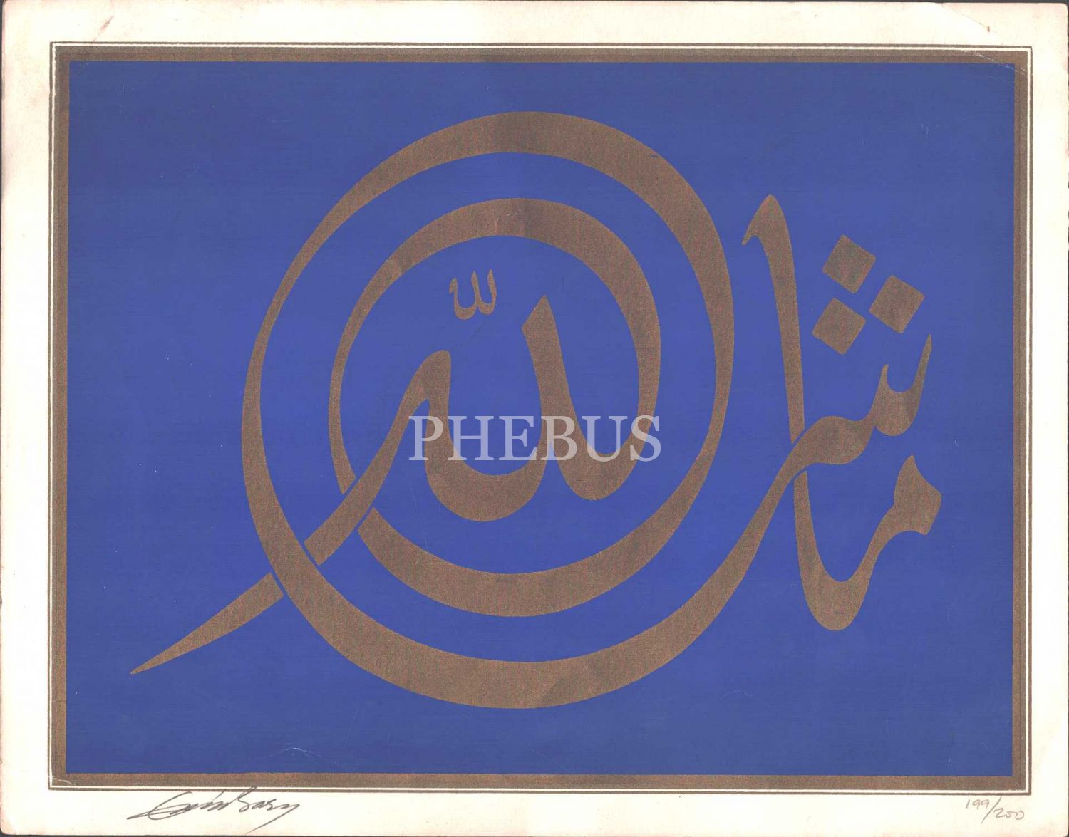 Emin Barın´dan ıslak imzalı özgün baskı celi divani "Maşallah" istifi, "199/200", 30x24 cm